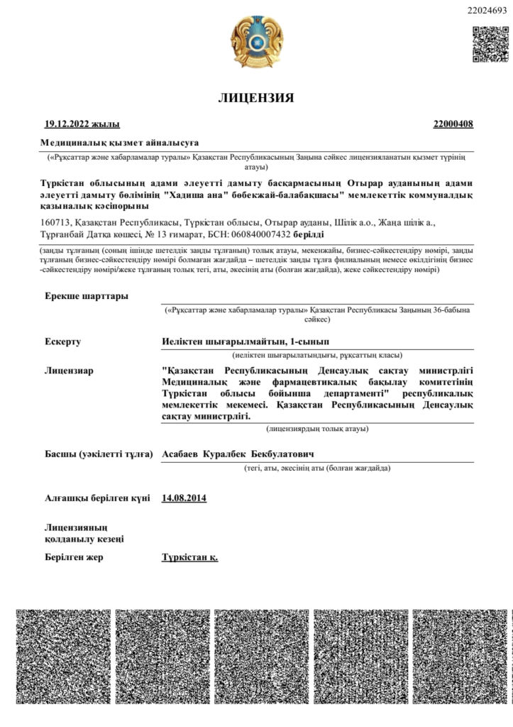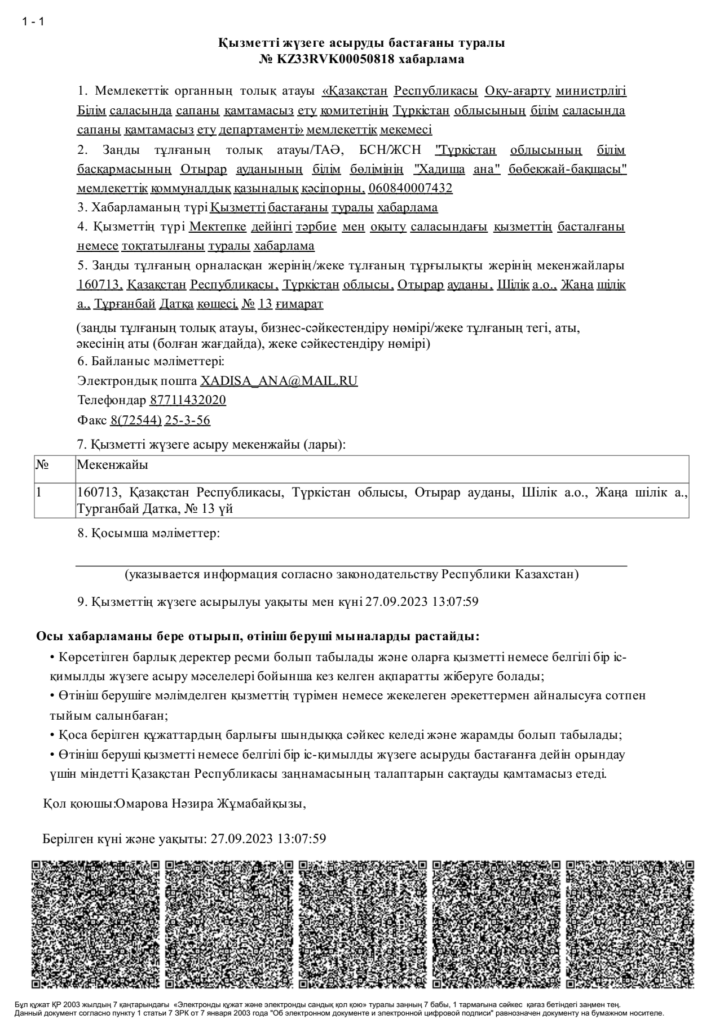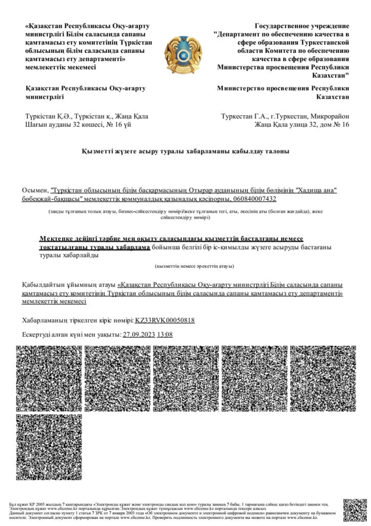 "Хадиша ана" бөбекжай-бақшасы" мемлекеттік коммуналдық қазыналық кәсіпорны